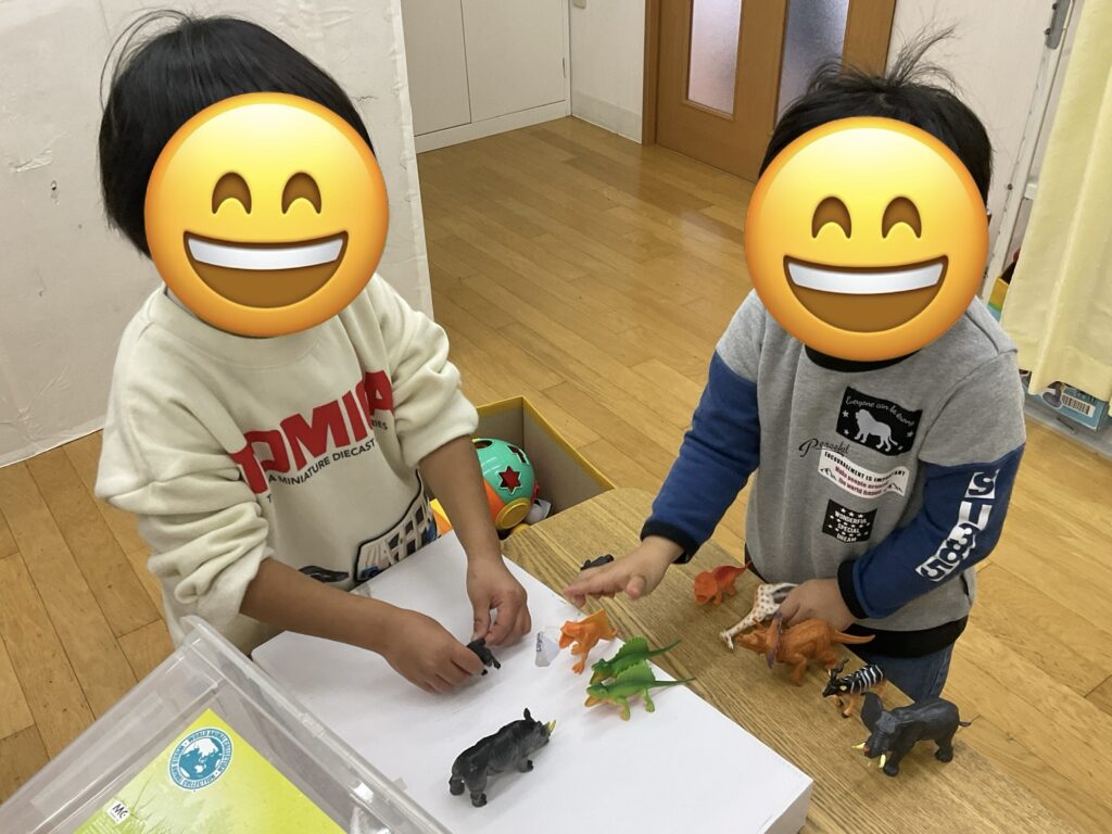大人気の動物や恐竜のフィギュアがトントン相撲になりました。