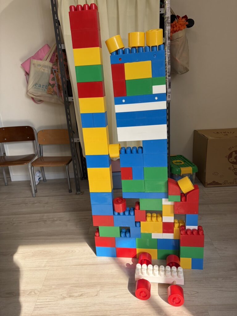 素敵な作品と大きなブロックタワーが出来上がっていました!
