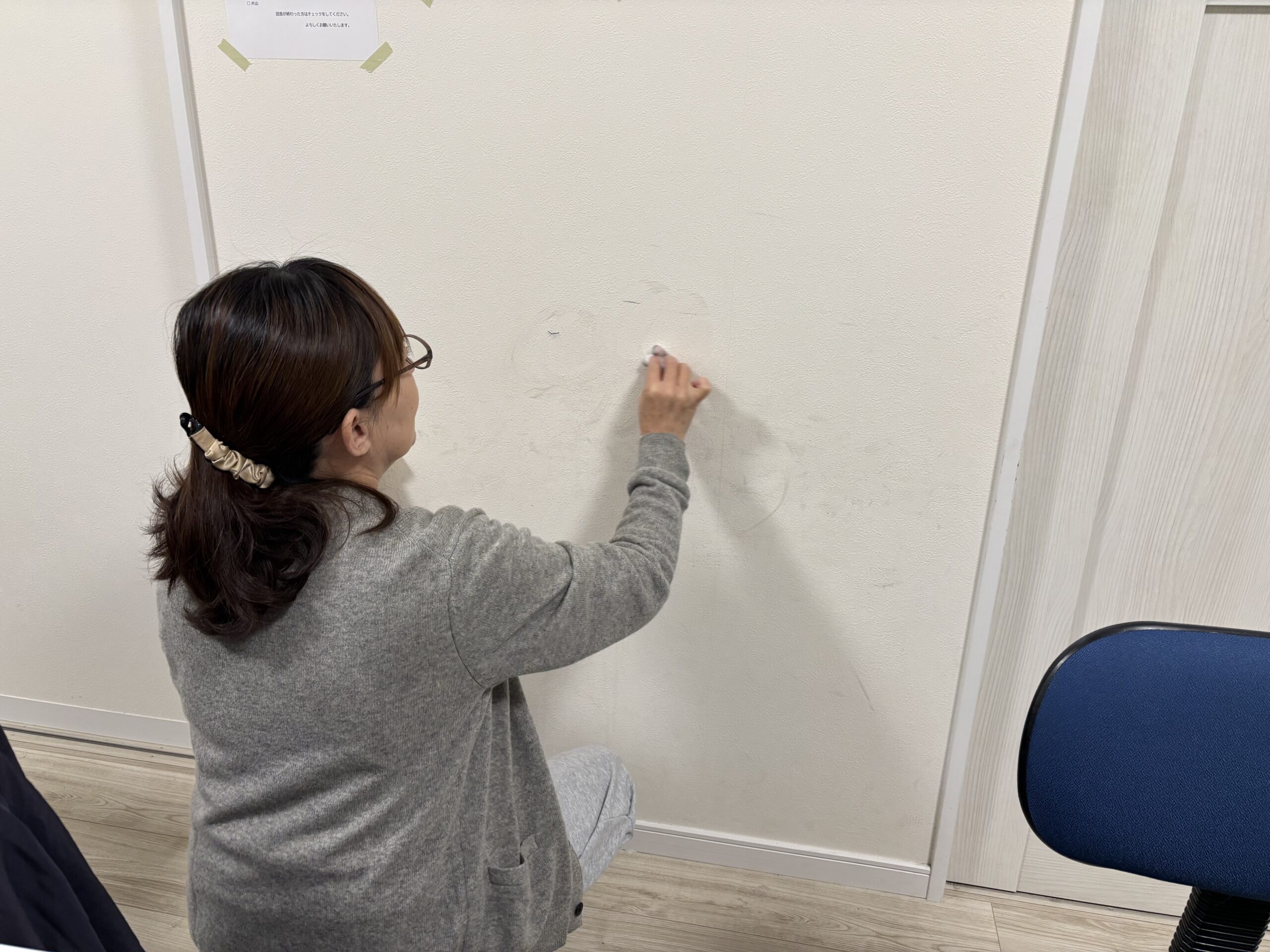 せっせ、せっせ💦 私、岩瀬です。みんなでお掃除コミュニケーション。自然と会話が生まれます。